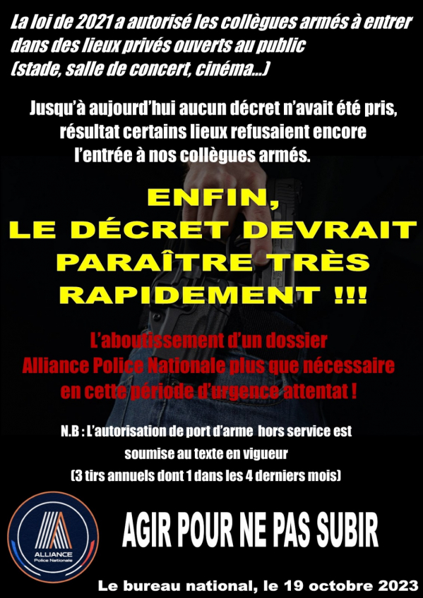 Port d’arme hors service, Le décret pour le port d’arme dans les ERP devrait paraître très rapidement
